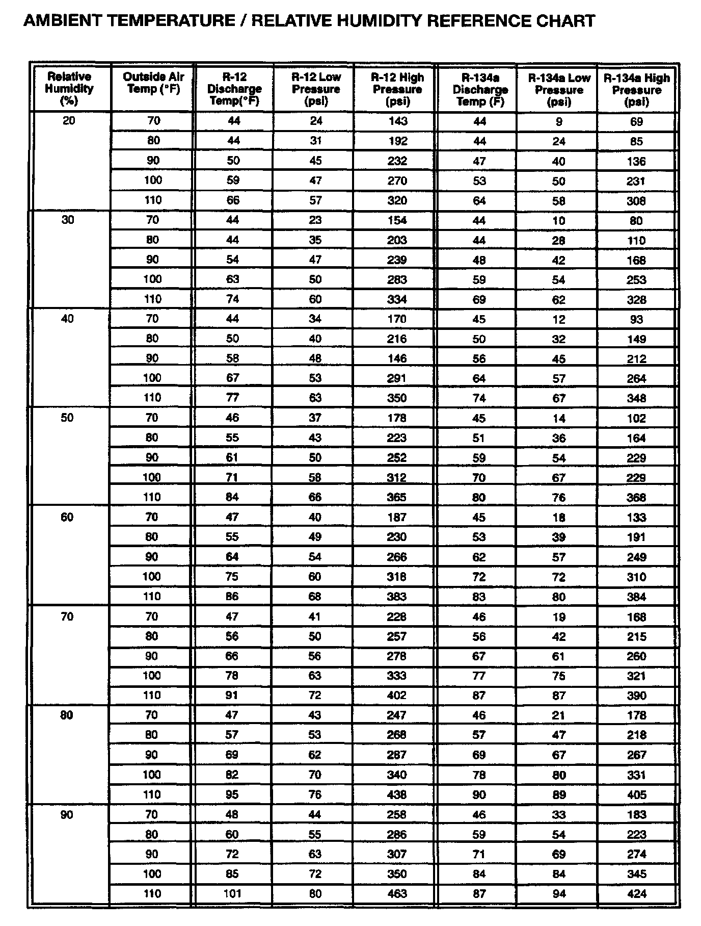 AMBIENT TEMPERATURE/RELATIVE HUMIDITY REFERENCE CHART