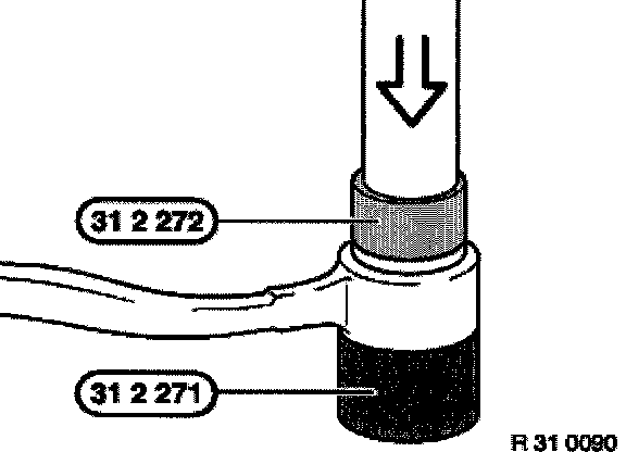 With a press and special tool 31 2 271/272, press rubber mount in and out of tension strut.