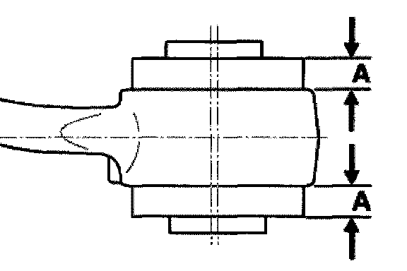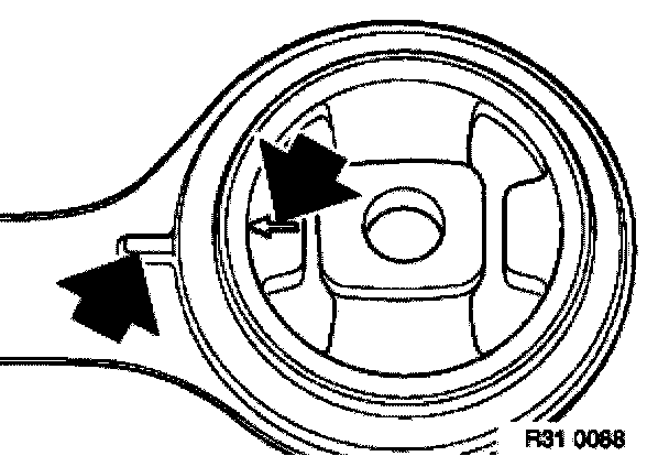 Marking on rubber mount points towards marking on the tension strut. Max. torsional tolerance ± 3°.