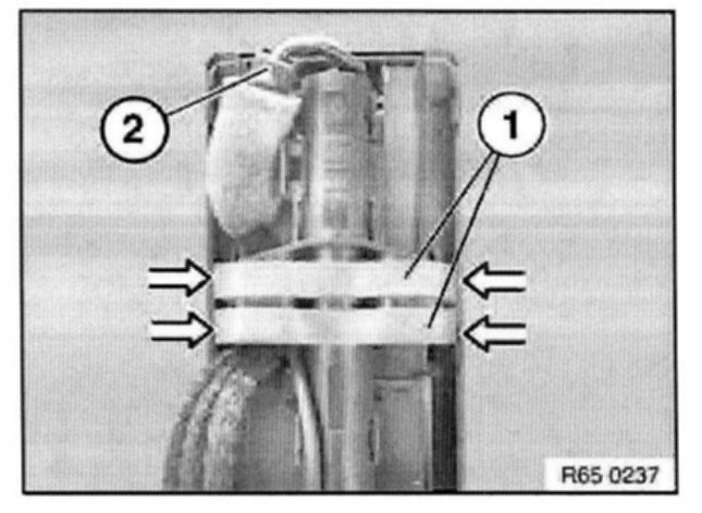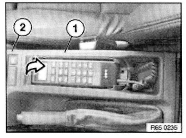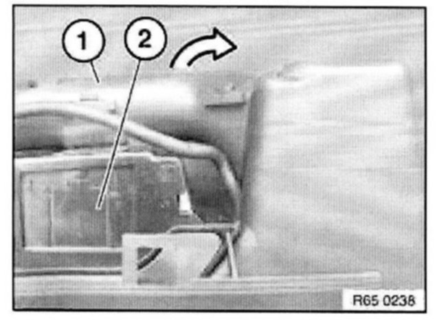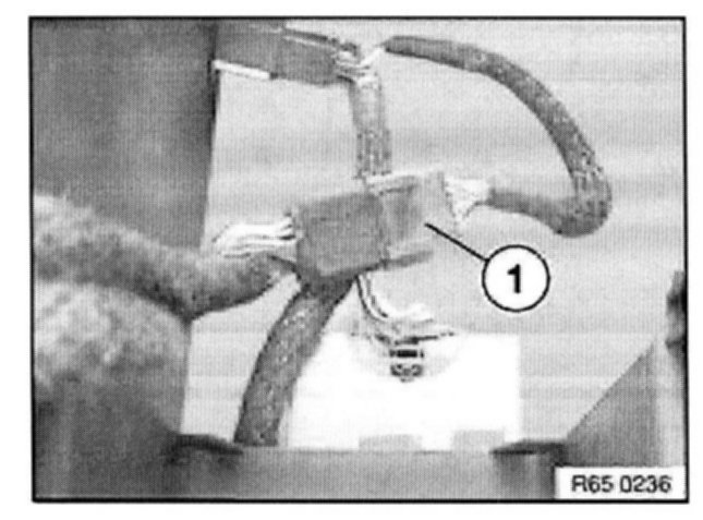 Unlock retainer (1) indirection of arrow. Disconnect plug connection (2).