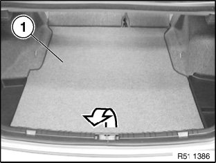 Take out luggage compartment floor trim panel (1).