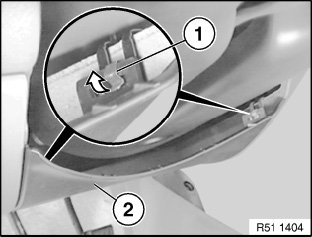 Unlock left/right retaining clips (1) and fold trim (2) down.