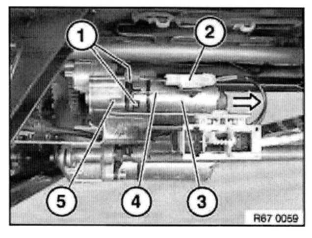 Ensure fixture for plug connection (2) and drive for seat height adjustment (4) on flange (3) are correctly seated.