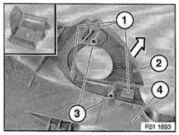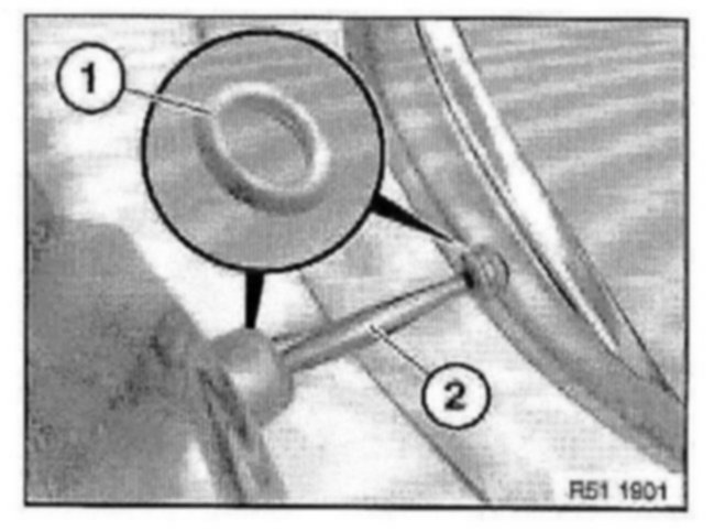 Lever out cap (1) with special tool 00 9 318 (universal wedge) towards inside.
