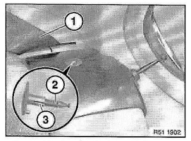 Press sput pin (2) down and pull out expansion rivet (3) towards top.