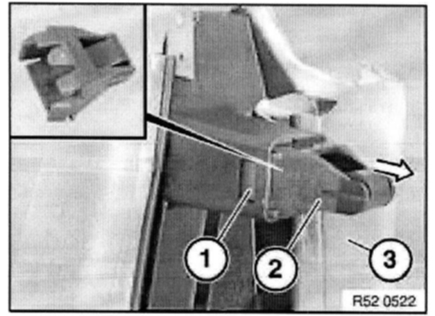If necessary, unlock catches (1) on left/right and detach clip (2) from side section (3).