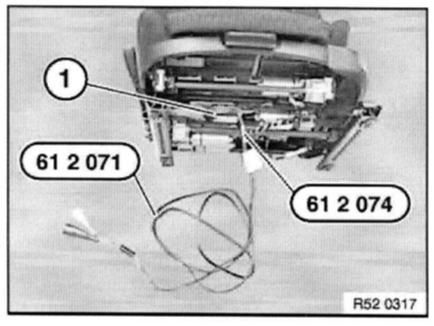 Attach cable 61 2 074 to cable 61 2 071 and connect plug connection (1) to front seat.