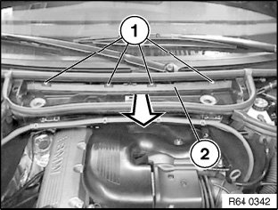 Release screws (1) and remove microfilter housing towards front.