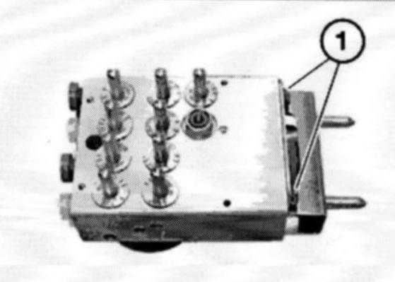 Release screw (1) and remove bracket (2) from hydraulic unit (3)