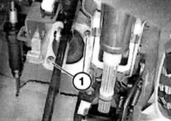 Carefully remove brake unit (1) from bulkhead and tilt out in direction of engine.