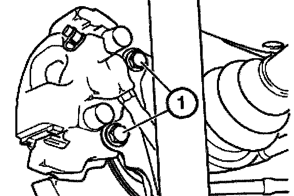 Unscrew bolts (1). Remove and suspend brake caliper from vehicle.