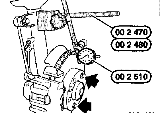 Fit special tool 00 2 510 (dial gauge) and special tool 00 2 470/480.