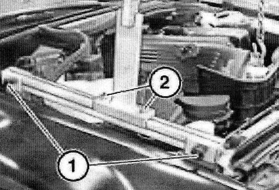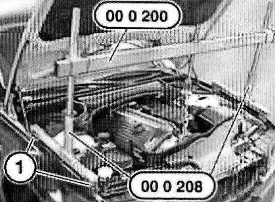 Note: The supports (1) of special tool 00 0 208 must rest on the bolt connection of both side walls.