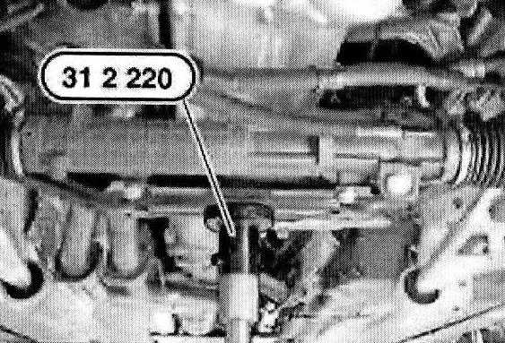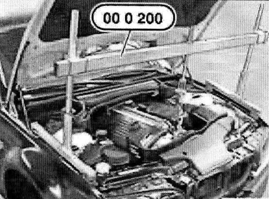 Secure special tool 00 0 200 to the front suspension lug on the engine.