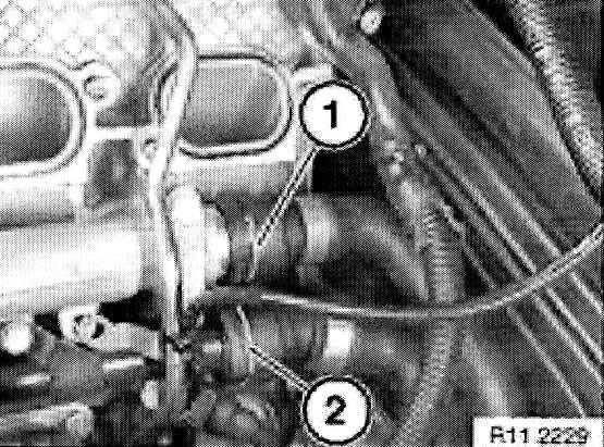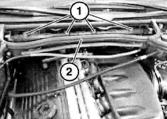 Pull lock and detach water hoses (1 and 2).
