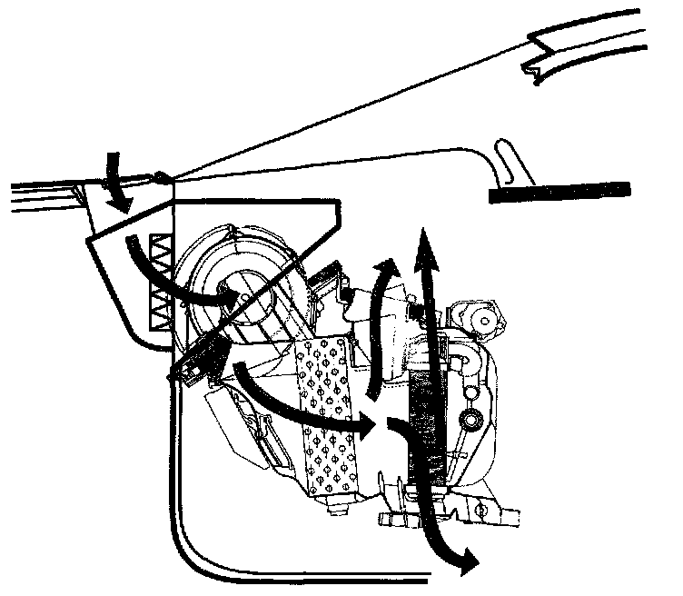 A dual squirrel-cage blower is used (on most BMWs) to propel air across the evaporator and/or the heater core and through the plenum to the vents. On BMW A/C systems, the blower speed is controlled by resistors/transistors that vary the amount of voltage applied to the blower; depending on the air volume control knob setting. In IHKA systems, the blower speed is controlled electronically.
