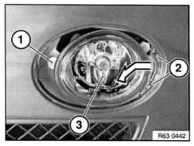 Withdraw fog lamp insert (2) in direction of arrow.