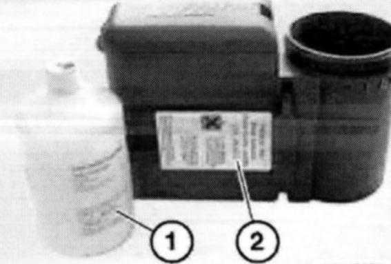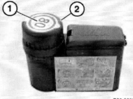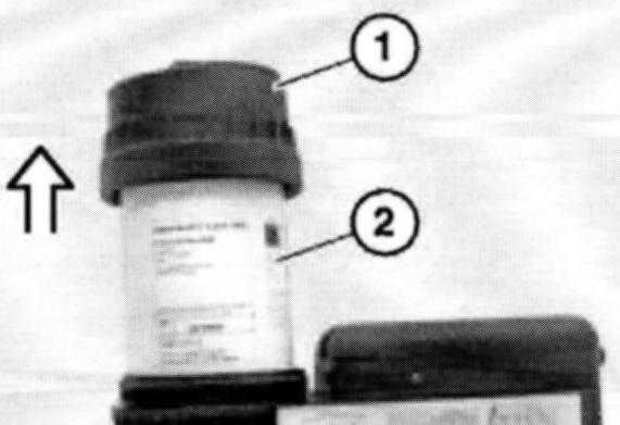 Note: Pay attention to expiry date (1) when installing a new sealant bottle. The expiry dates of the sealant bottle (1) and the shelf-life sticker (2) on the housing must be the same.