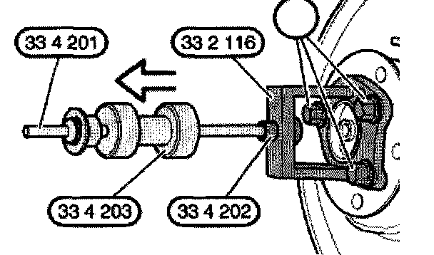 Pull off bearing unit with special tool 312 116/33 4 201/202/203 and wheel studs (1).