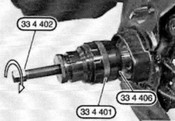 Attach special tool 33 4 406/401 to inner bearing race and compress until special tool can still just be turned.