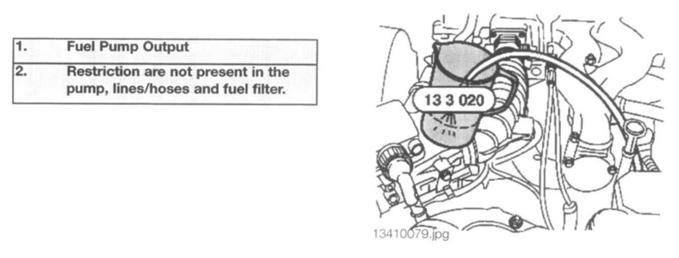 The fuel pump should be tested for delivery pressure and volume. Caution when disconnecting fuel hoses because there is the possibility of residual fuel pressure! Install the fuel pressure adapter to the fuel pressure fitting.