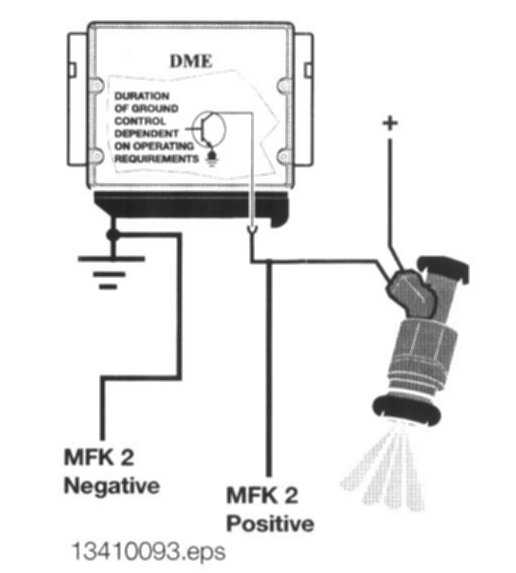 4. ECM Final Stage transistor activation. This test function is found under the Oscilloscope Preset list - "Ti Injection Signal". Install the 88 pin adapter, Diagnostic cable MFK 2 positive lead to the ground activation circuit for the injector. This test is performed with the engine running.