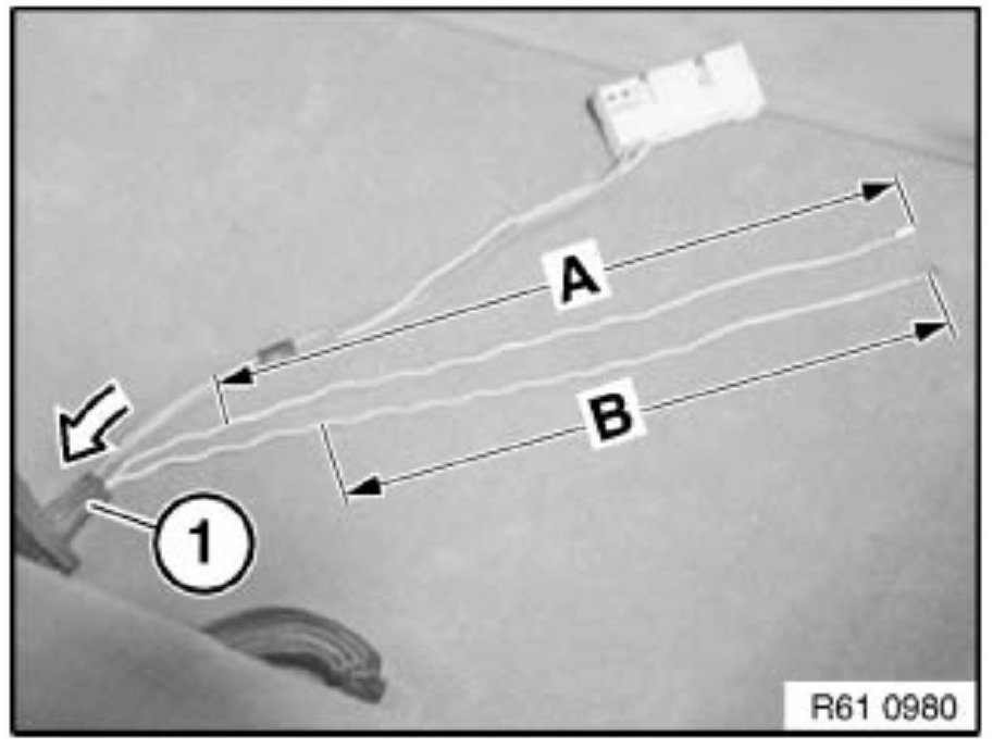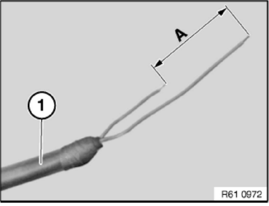Cut the blue wire on the repair wiring harness section (1) to different lengths (A = approximately 30 mm).