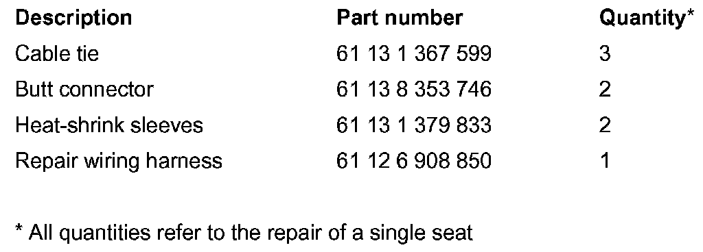 The minimum transition resistance must be achieved when the repair wiring harness is fitted. For this reason it is essential that the hotspots in the Repair Instructions are observed.