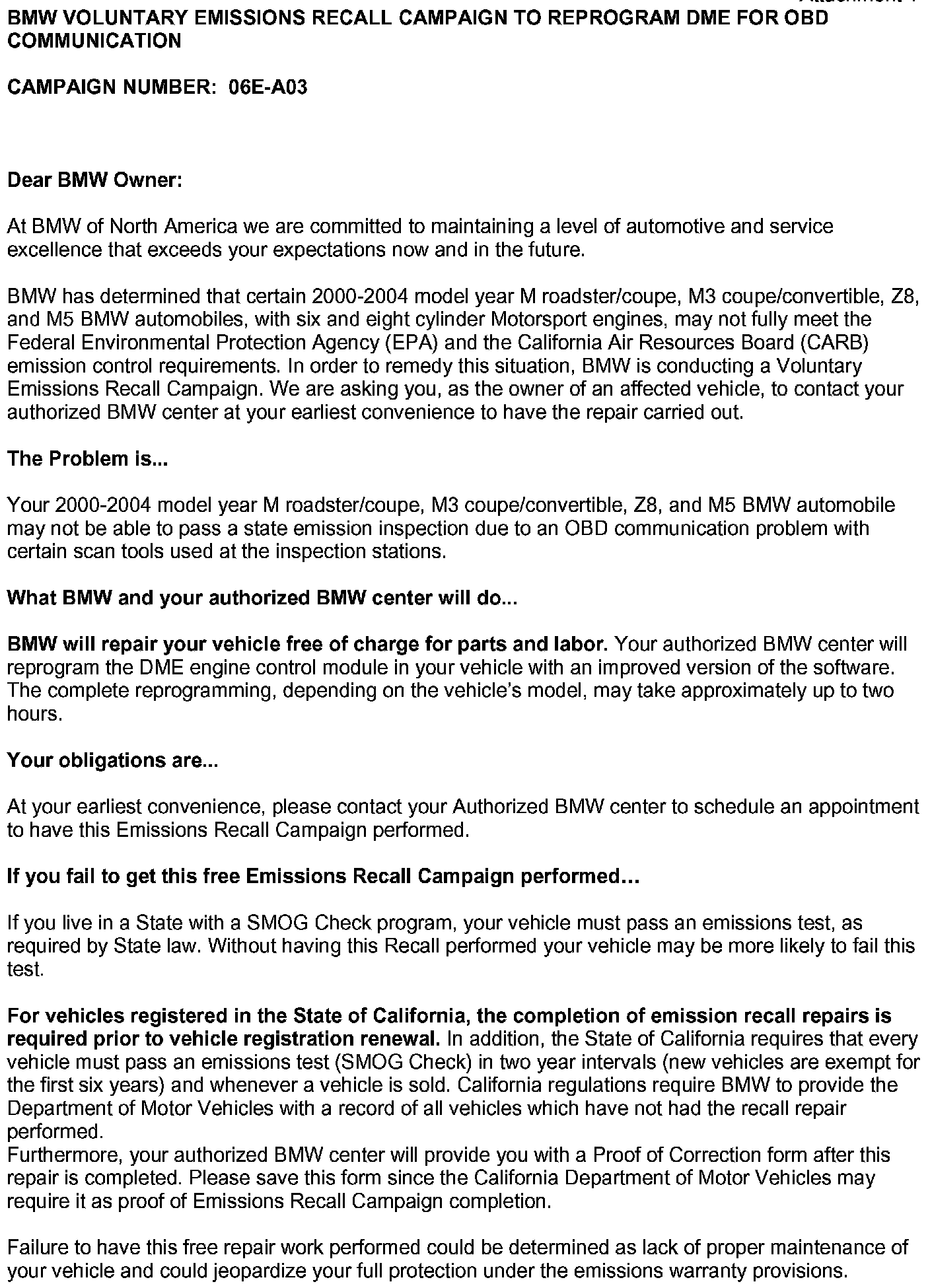 Recall 06E-A03 - DME Programming for OBD Communication