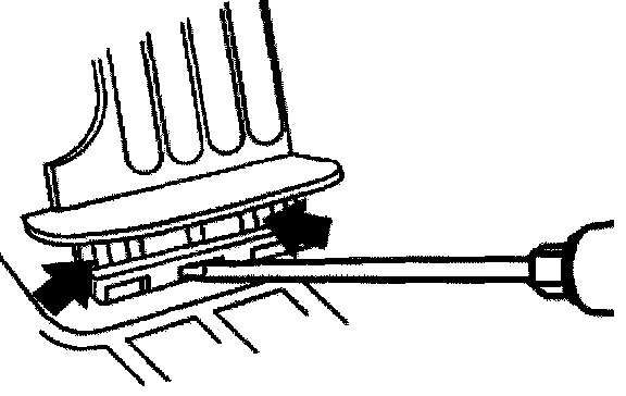 Bend retaining clips forwards and lever out foot pedal upwards.