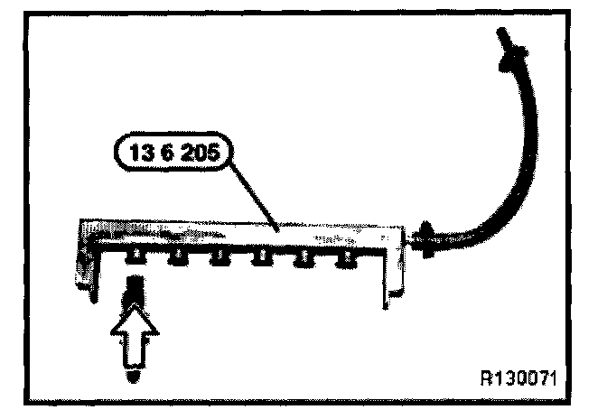 Connect special tool 13 6 206 to a 12 V car battery. This removes the remaining fuel from the injector valves. Connect special tool 13 6 205 to compressed air connection of max. 5 bar.