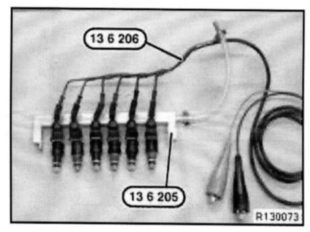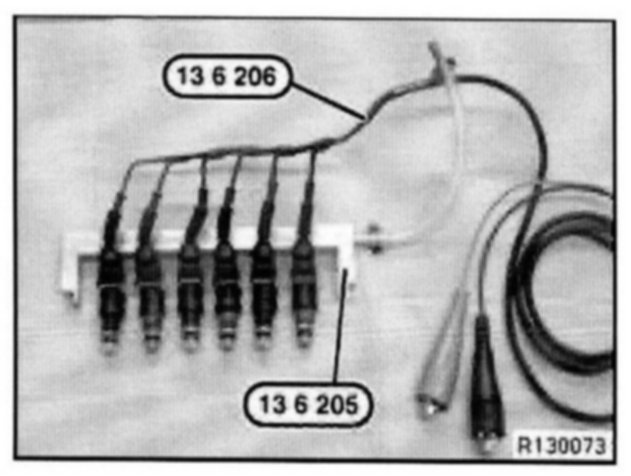 Connect special tool 13 6 206 to injector valves and to a 12 V car battery.