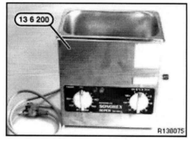 Fill special tool 13 6 200 with cleaning concentrate 13 6 207 as specified by manufacturer.