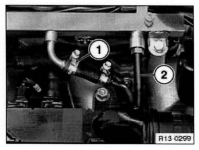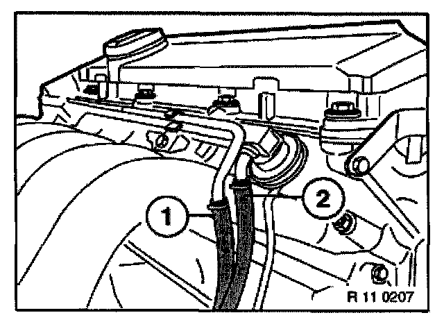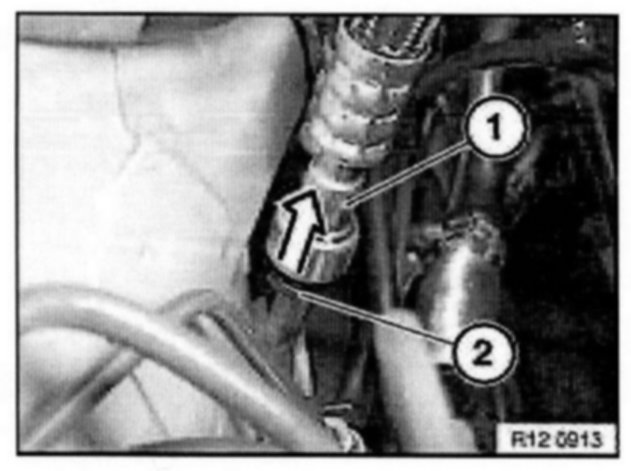 Press unlocking ring (2) upwards, keep pressed and detach fuel hose (1).