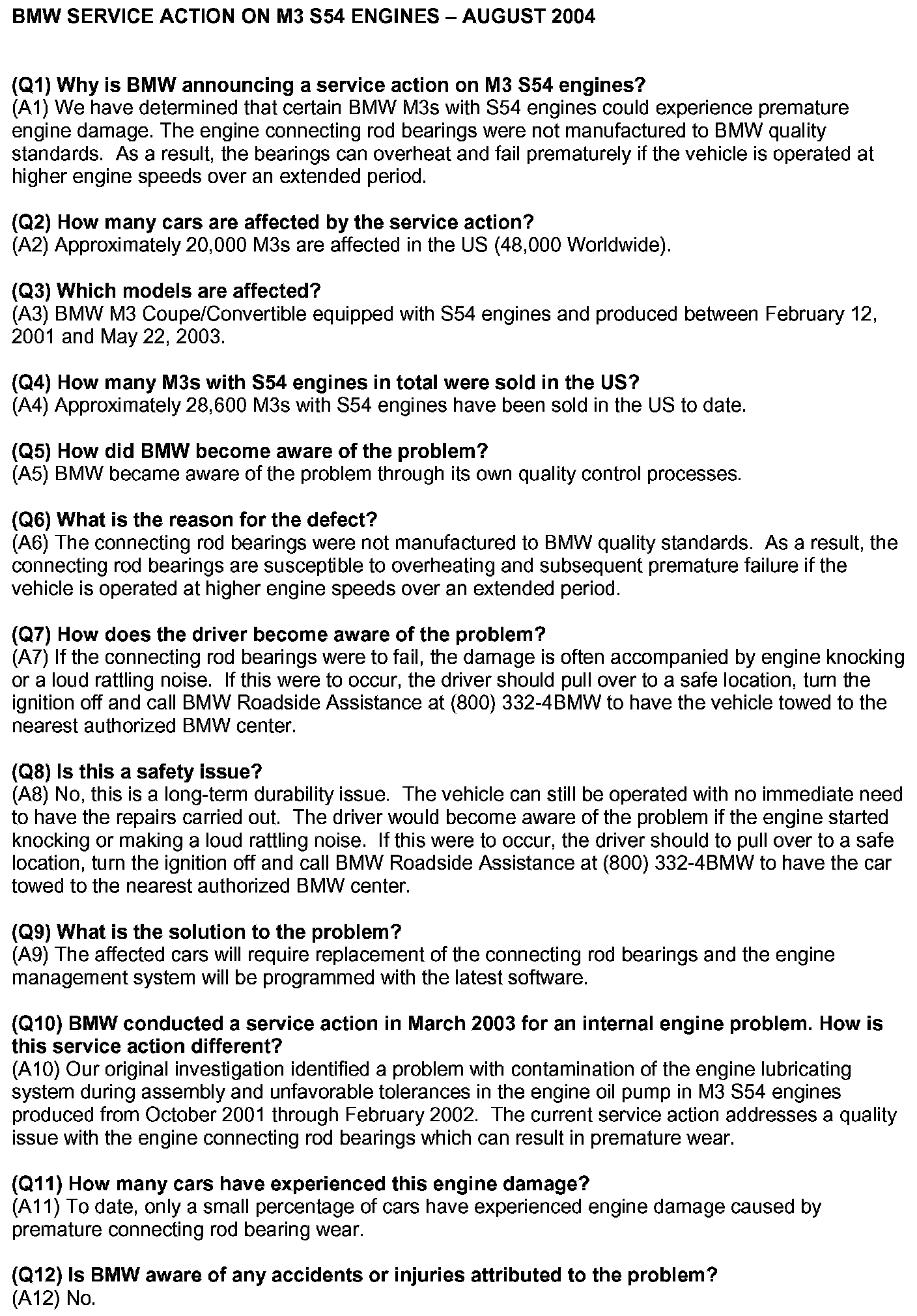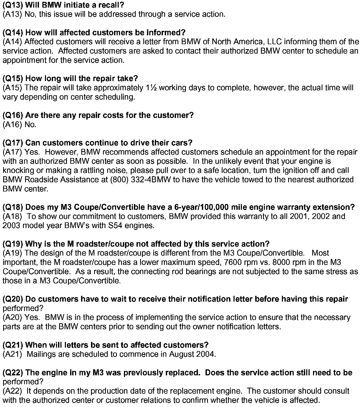 Campaign - Rod Bearing Replacement/PROM Update