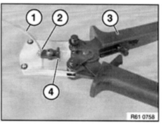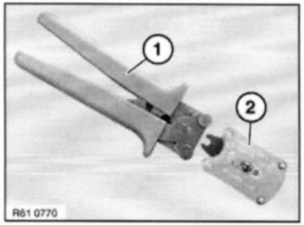 To crimp optical fibers, use pliers 61 4 321(1) in conjunction with crimping head 61 4 323 (2) from crimping set 61 4 320