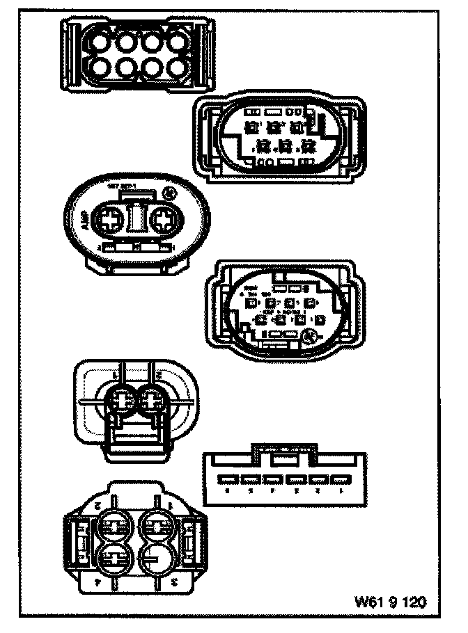 NOTE: For repair kit IV for electrical system 61 9 020 - Consisting of nine assorted socket housings and sealing plugs for component conductor sealing. Mote: Reordering of individual components through BMW Parts Service only.