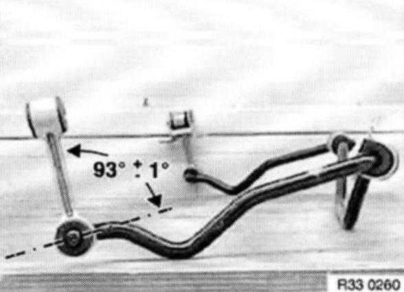 Immediately rotate stabilizer link into illustrated angular position to stabilizer bar. Once mounting agent has evaporated, stabilizer link can no longer be rotated.