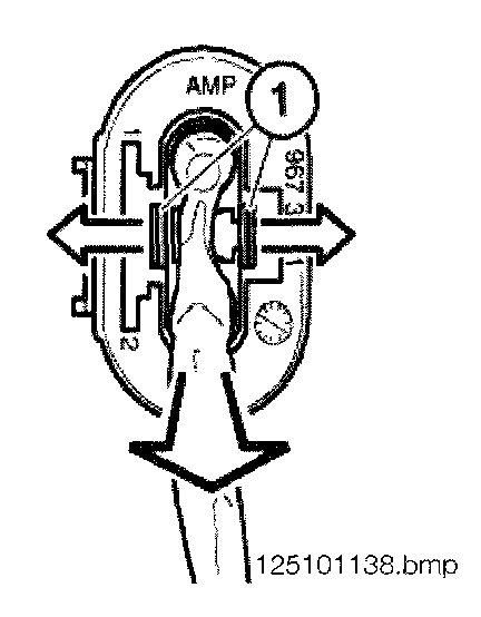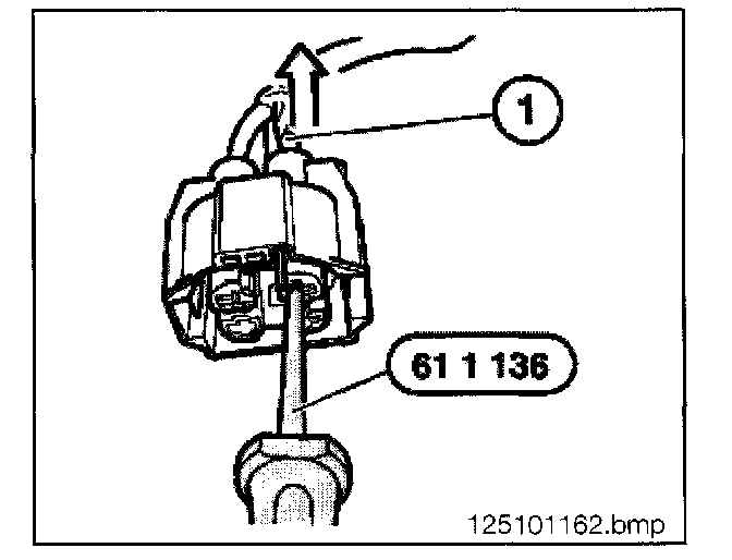 - Unlock contact with special tool 61 1 136 and pull out cable (2) and contact towards rear.