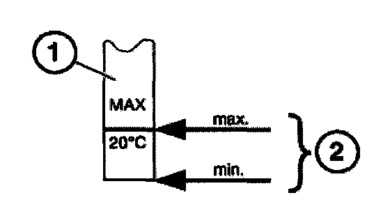 Fill expansion tank up to MAX marking (2) on dipstick (1).