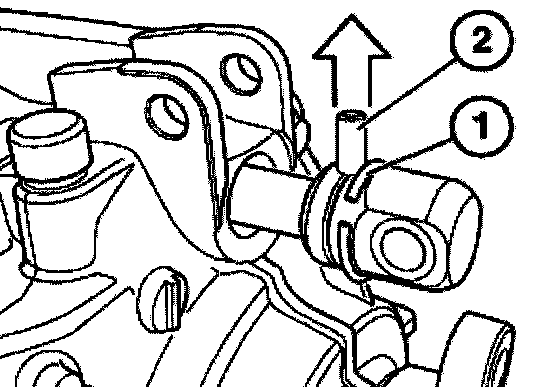 Slide back snap ring (1) and drive out dowel pin (2).
