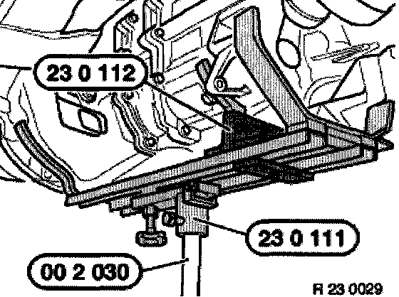 Support transmission with special tool 00 2 030, 23 0 041 and 23 0 042.