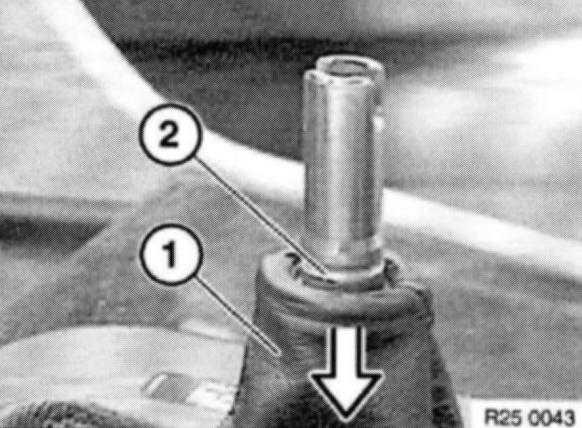 Push rubber gaiter (1) down until groove (2) is fully exposed.