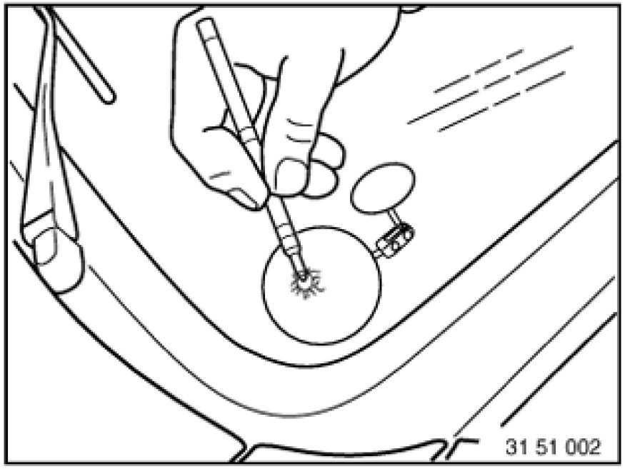 Note: Heat vehicle to room temperature ( > 20° C ), if necessary, heating windshield from inside.