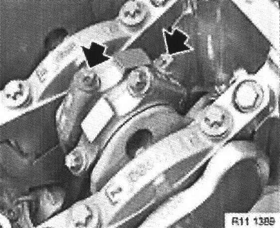 Caution: When the pistons are removed and installed, there is a danger that the piston-cooling spray nozzles might be damaged.