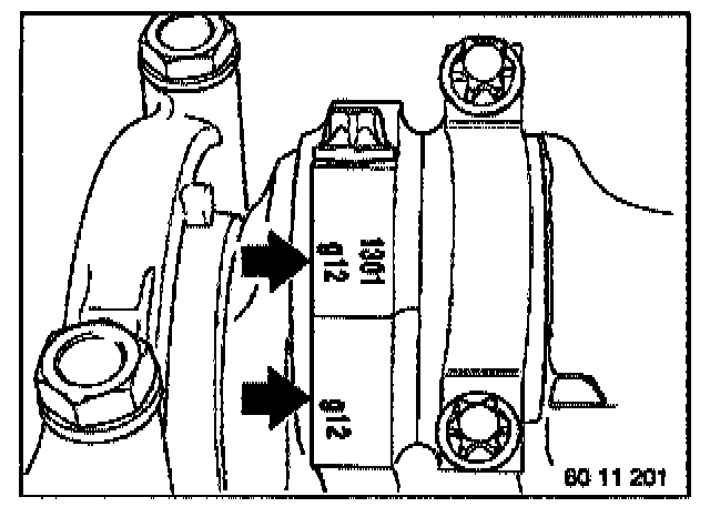 Note: The direction in which the pairing numbers on the conrod point does not affect the function. Install conrod bearing, refer to Connecting Rod Bearings.