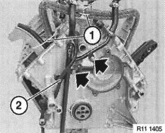 Note: Insert cable (2) into cable clamp, close cable clamp and additionally secure with a cable tie to oil return line.
