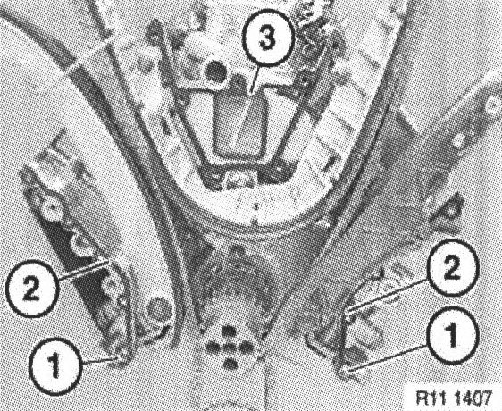 Tensioning rail and timing chain remain secured with a plastic strap (1).