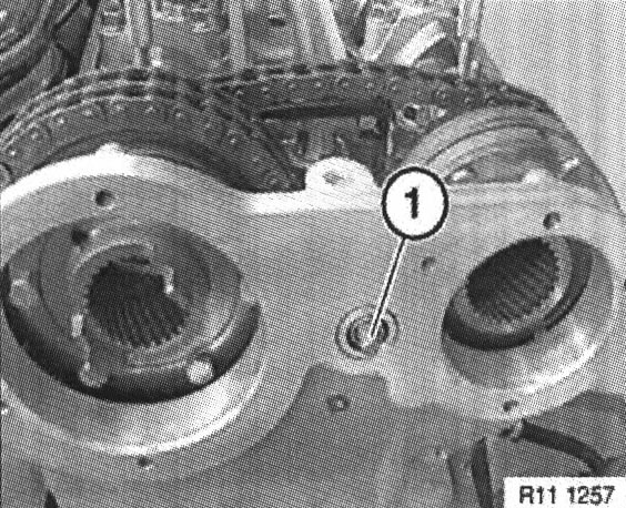 If no follow-on work is scheduled after the timing case cover has been removed, remove the VANOS adjustment unit only - the splined shafts are to remain in the VANOS gear. Do not adjust the camshaft timing.