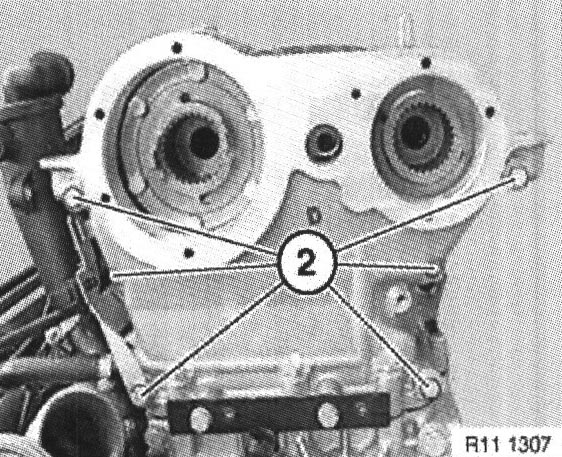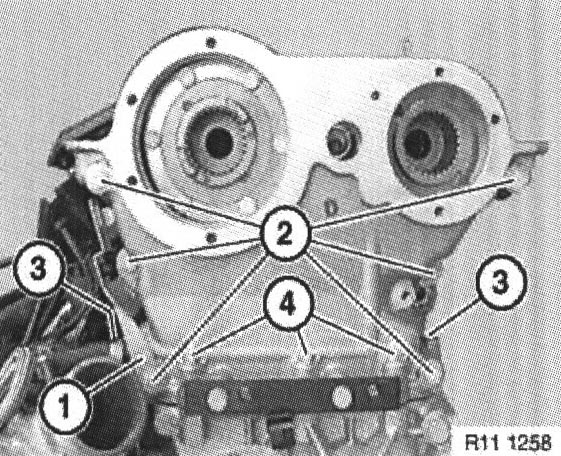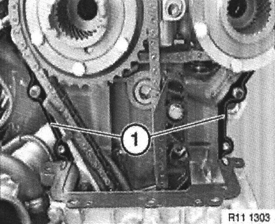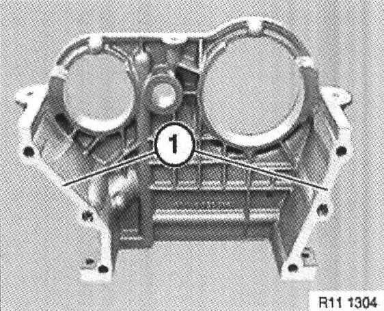 Ensure that seals are correctly seated. Fit timing case cover with inserted screw (1).